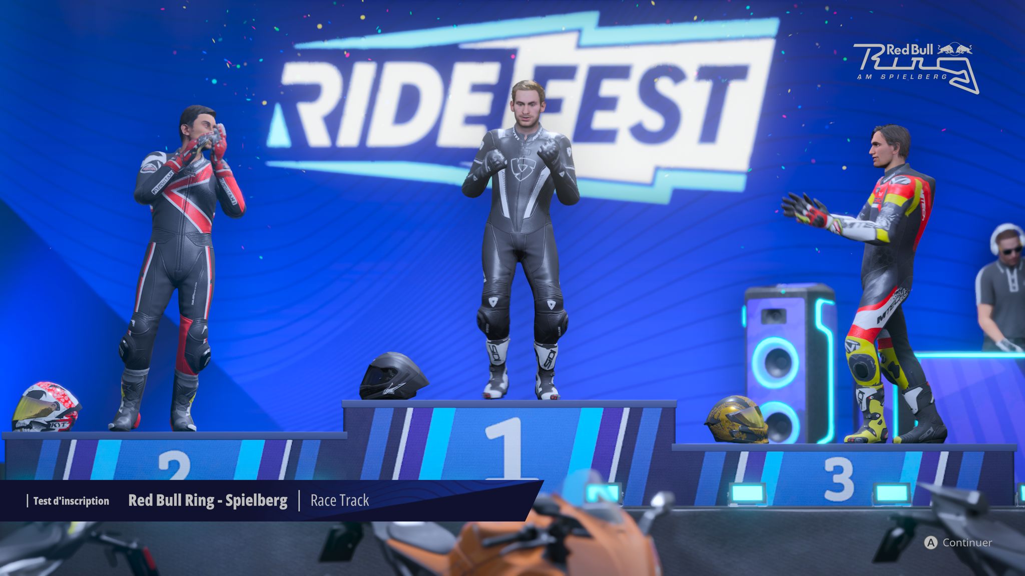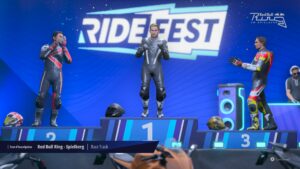 Place au mode carrière qui nous embarque au RideFest, un festival itinérant où l’on choisit ses épreuves pour gagner des points de gloire en remportant des courses. La structure fonctionne mais l’habillage manque de personnalité. On est censé participer à un festival, pourtant il n’y a presque aucune mise en scène à part quelques vidéos souvent floues (streaming?) et muettes entre les groupes. Aucun dialogue et les courses s’enchaînent de manière très mécanique. L’idée était bonne mais elle perd de son impact à cause de cette absence complète de narration. On aurait aimé ressentir un vrai esprit festival avec des ambiances qui évoluent au fil des épreuves mais on reste dans une expérience purement fonctionnelle.