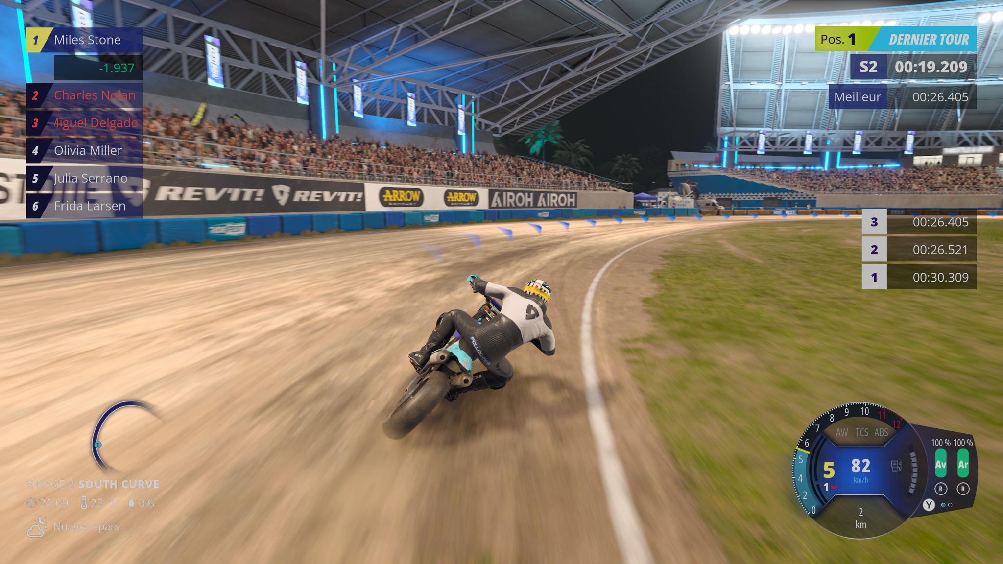 Le passage au moteur Unreal Engine 5 se fait lui aussi sentir. Les motos sont superbement modélisées et les détails impressionnent. Les effets de lumière et la météo dynamique renforcent l’immersion et donnent du relief aux pistes. Certains décors restent par contre un peu plats ou inégaux mais globalement le rendu marque un net progrès par rapport à son prédécesseur.