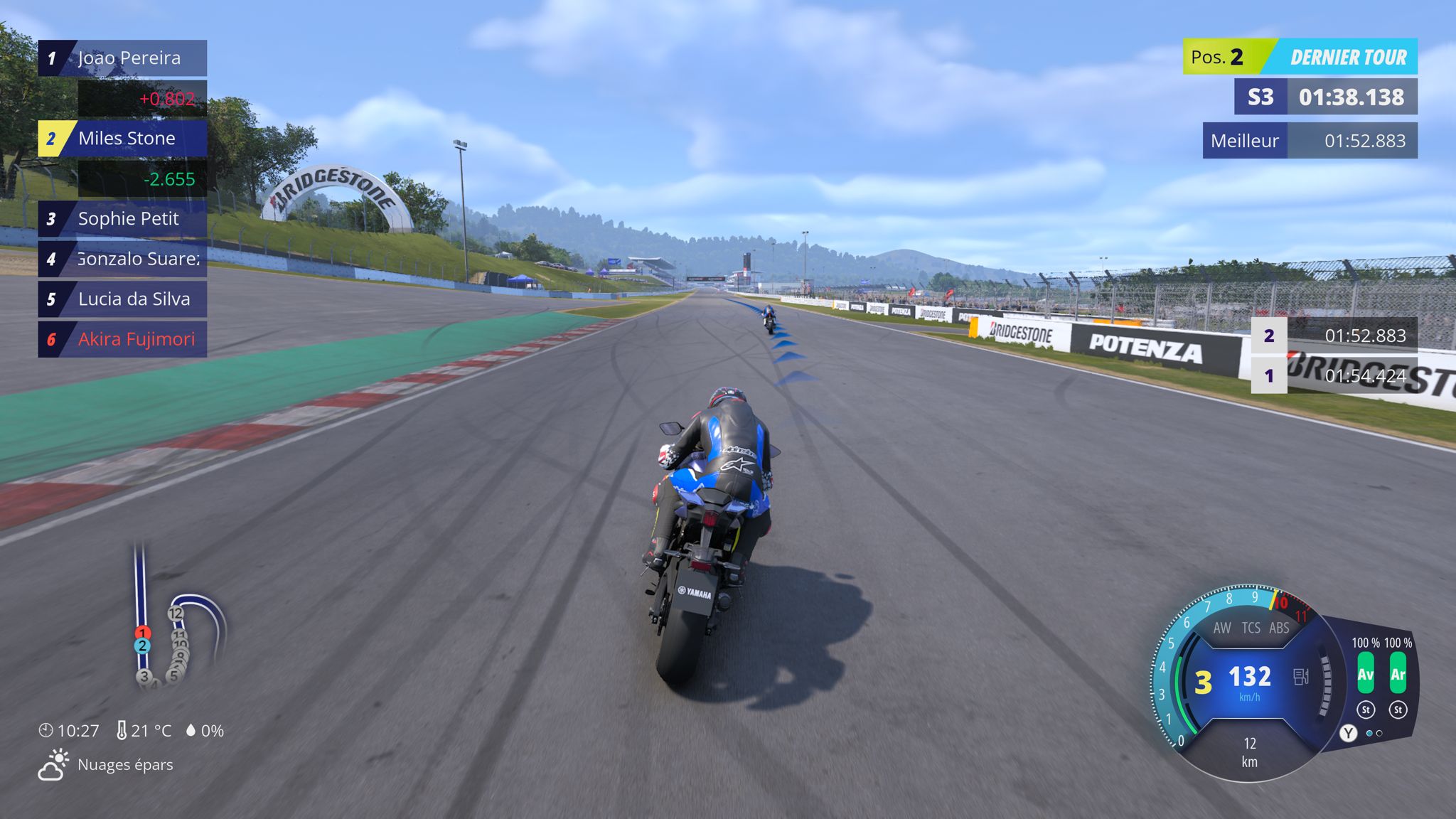 On repasse aux points positifs avec l’apparition du mode Bridgestone Riding School. Enfin, on entend des voix et les explications sur la gestion des points de corde ou des aides électroniques comme l’anti-wheelie, le TCS ou l’ABS sont claires. Ce mode fait à la fois office de tutoriel et de rappel pour les joueurs expérimentés et apporte une vraie respiration dans un jeu par ailleurs assez silencieux. Dommage que la difficulté globale des permis ne soit pas plus marquée. J’aurais aimé retrouver un niveau d’exigence à la Gran Turismo.