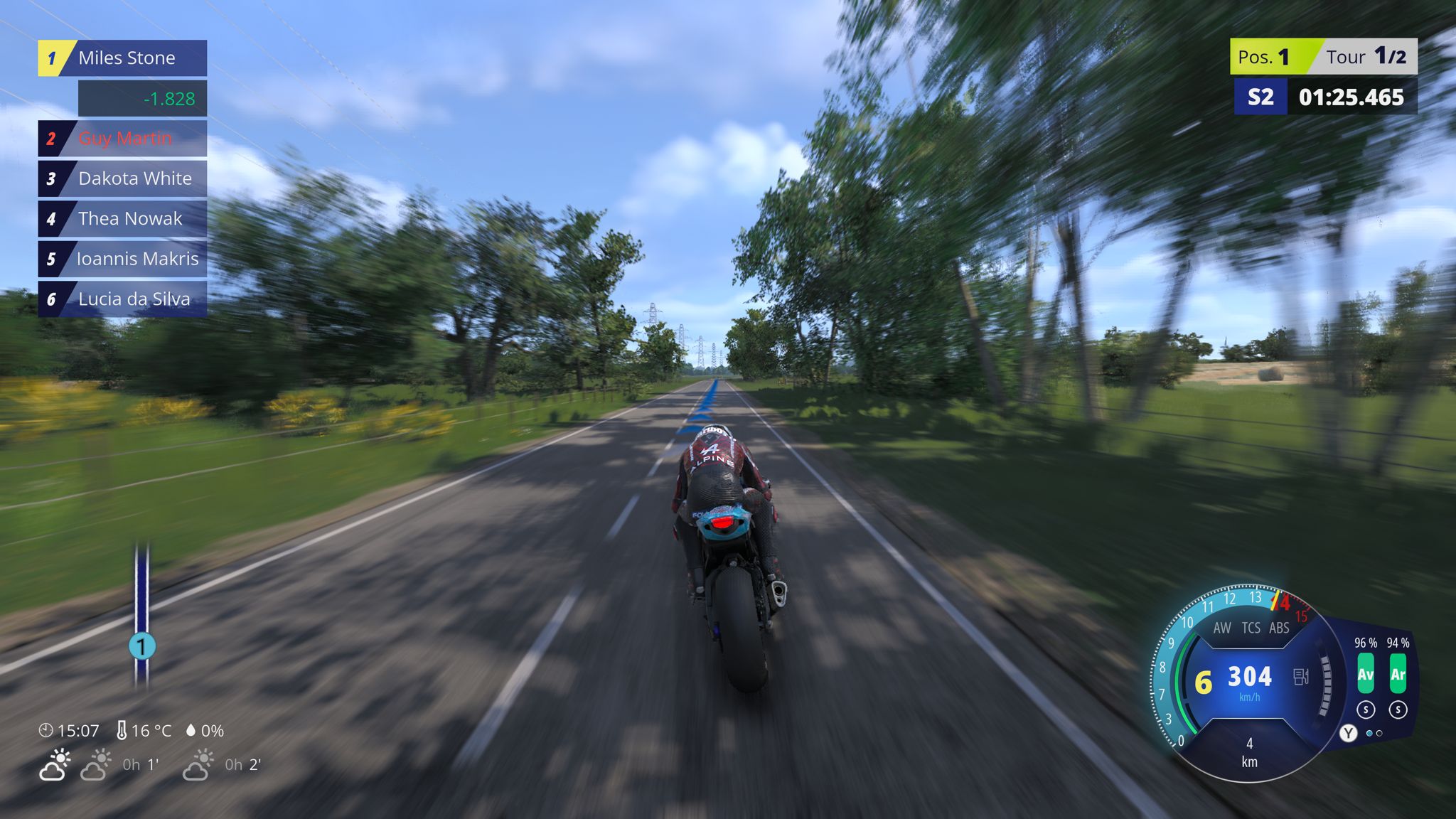En piste, Ride 6 apporte quelques jolies améliorations. Les sensations de pilotage restent plaisantes et la conduite est plus exigeante. Les accélérations en sortie de virage et le pilotage sous la pluie demandent maintenant plus de précision et de technique qu’auparavant. L’apparition des secteurs de temps dans les courses chronométrées est pratique pour améliorer ses performances.